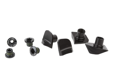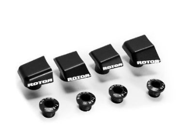 Chainring Bolts with covers to mount Rotor Q-Rings 110×4 chainrings on Shimano Dura Ace 9100 cranks with 4-arm spider and 110mm BCD.